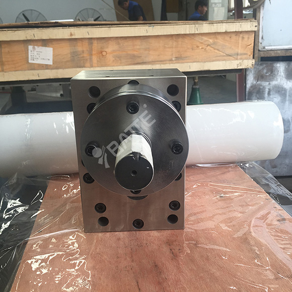b、一般按原套泵板組裝,分組裝配紡絲計量泵的主體。先裝上齒輪試轉(zhuǎn),再裝上蓋板,如是高壓泵還須壓入定位套,然后再試轉(zhuǎn)主軸,確認(rèn)靈活性,如無阻滯現(xiàn)象,用力矩扳子擰緊螺釘。